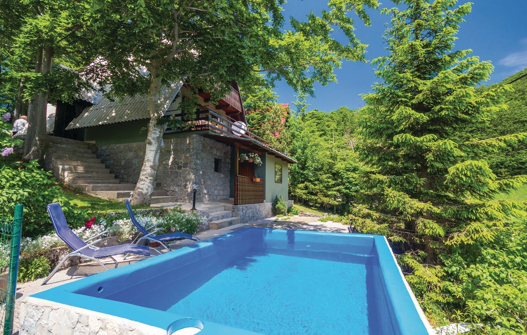 Just about twenty kilometers from the city of Rijeka, at the popular excursion spot Platak, sits a mountain holiday home. It is ideal for those who love nature, fresh air, and a good night’s sleep without the intense heat and humidity. The nature is beautiful and invites you to hike, climb, and bike. Refresh yourself in the outdoor pool and relax on the terrace.