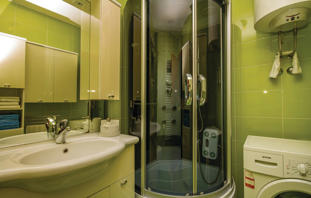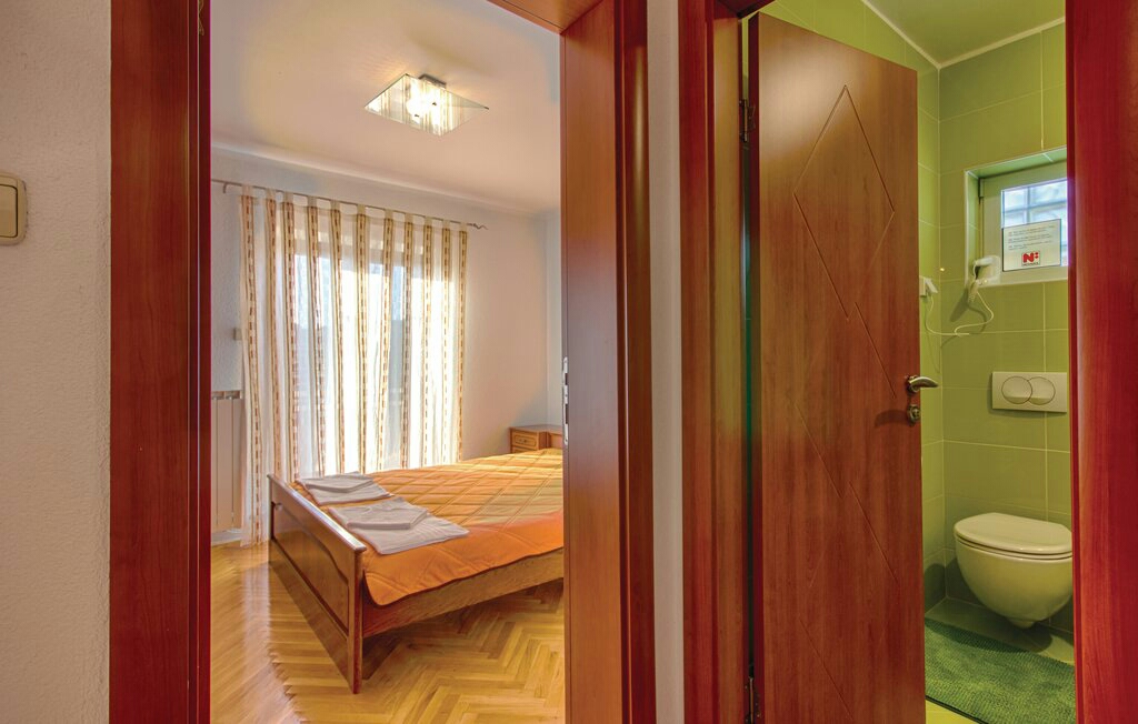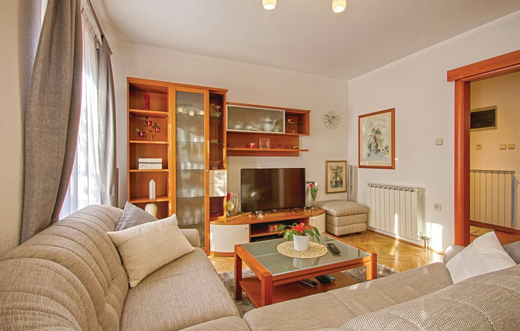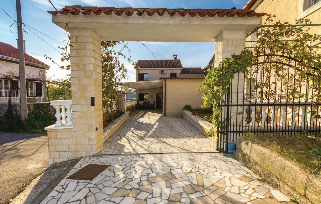 3 sobe. Natkrivena terasa 50m² s kaminom, stolom i 6 stolica.