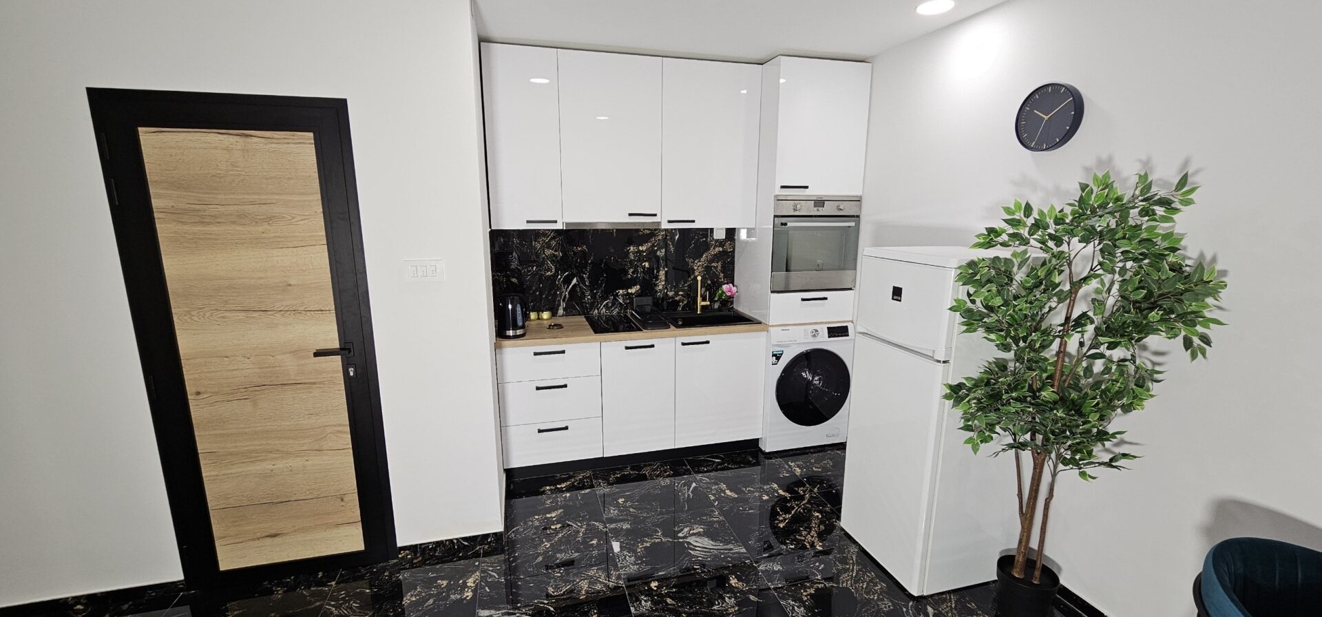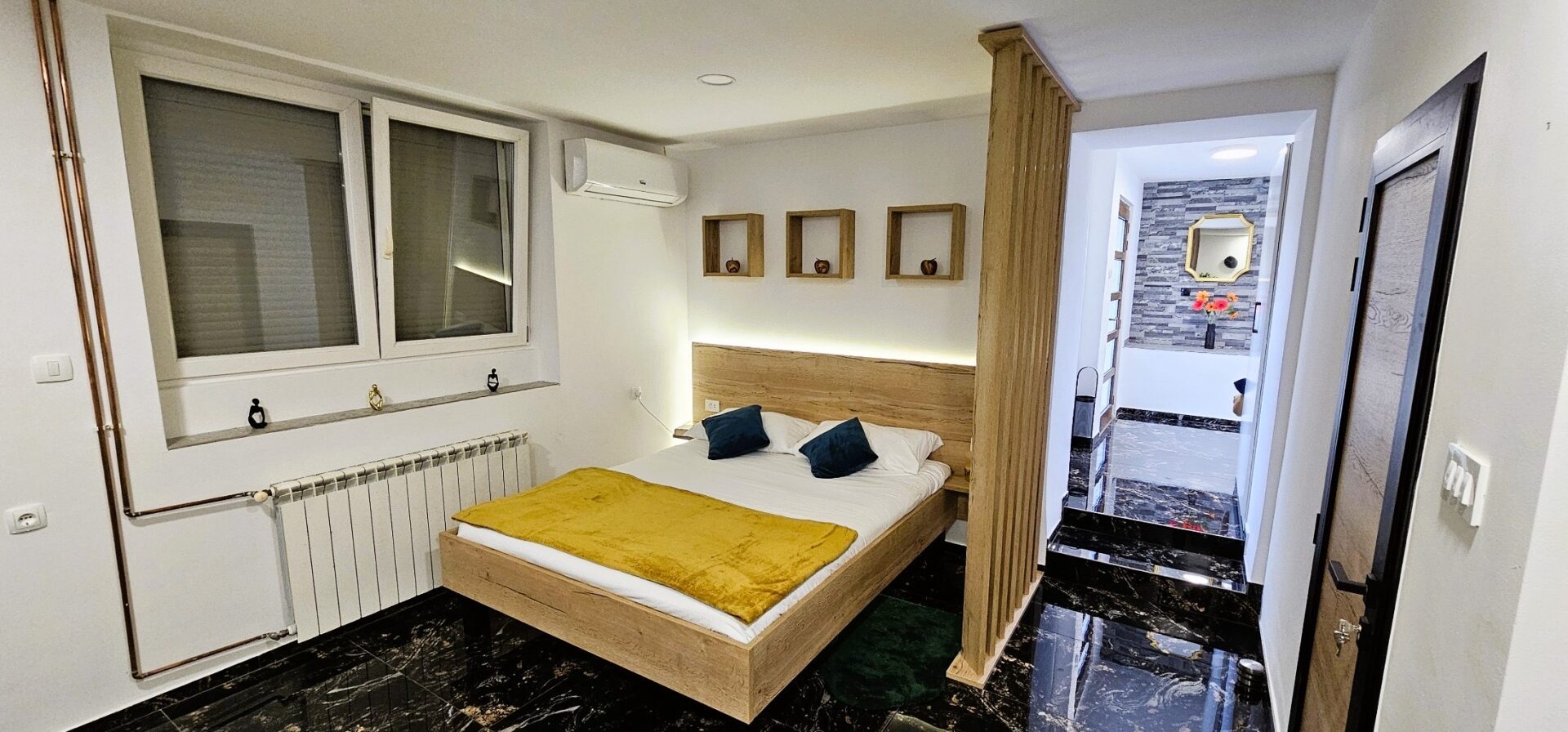 Naš luksuzno uređeni studio apartman pruža vam privatnost i udobnost na mirnoj lokaciji. Uživajte u potpuno opremljenoj kuhinji s perilicom za suđe i pećnicom, opuštajte se na kraljevskom krevetu i dodatnom ležaju. Perilica i sušilica za rublje, TV ravnog ekrana, klima uređaj i ostali sadržaji učinit će vaš boravak nezaboravnim.